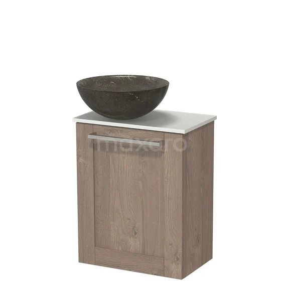 Modulo Pico WC-Möbel mit Aufsatzwaschbecken | 41 cm Mittelbraune Eiche Rahmenfront Aufsatzwaschbecken aus Naturstein Waschtischplatte aus Solid Surface