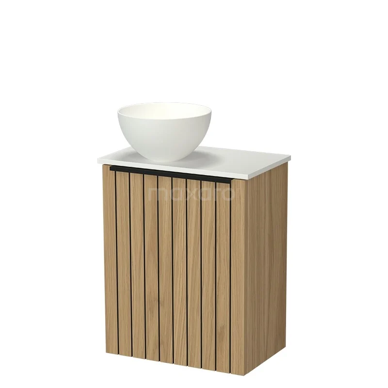 Modulo Pico WC-Möbel mit Aufsatzwaschbecken | 41 cm Naturfurnier Streifenfront Solid Surface Aufsatzwaschbecken Solid Surface Waschtischplatte