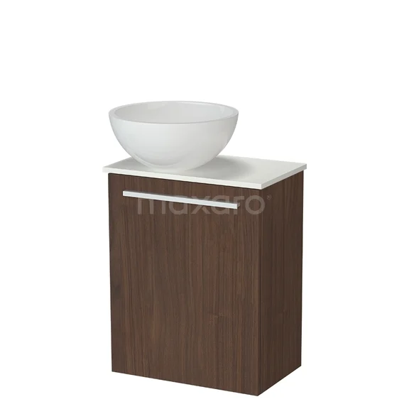 Modulo Pico WC-Möbel mit Aufsatzwaschbecken | 41 cm Nussbaum glatte Front Mineralguss Aufsatzwaschbecken Solid Surface Waschtischplatte