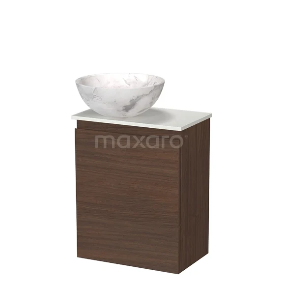 Modulo Pico WC-Möbel mit Aufsatzwaschbecken | 41 cm Nussbaum grifflose Front Naturstein-Aufsatzwaschbecken Solid Surface Waschtischplatte