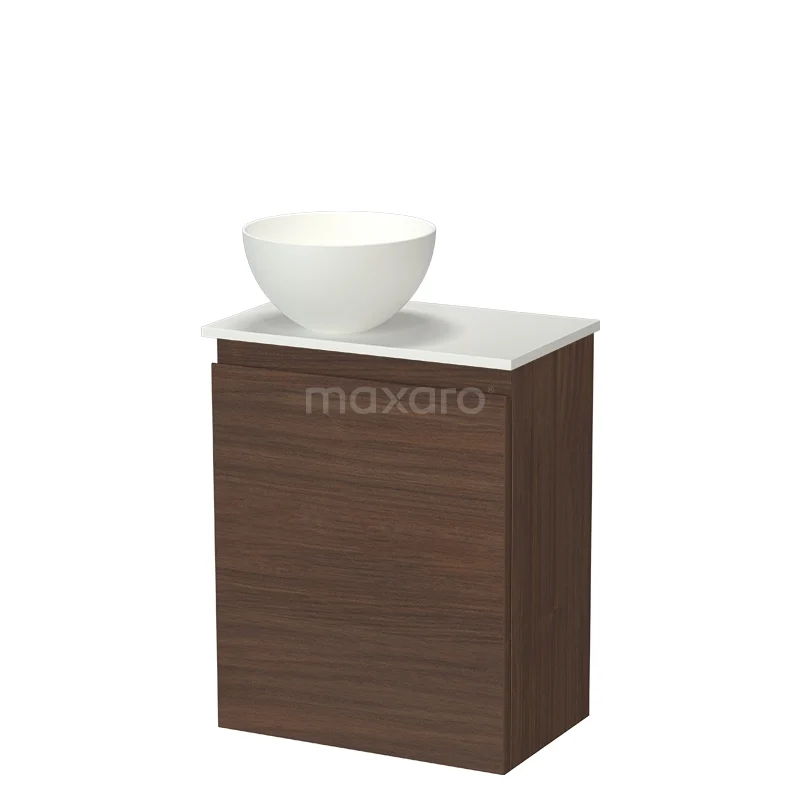 Modulo Pico WC-Möbel mit Aufsatzwaschbecken | 41 cm Nussbaum grifflose Front Solid Surface Aufsatzwaschbecken Solid Surface Waschtischplatte