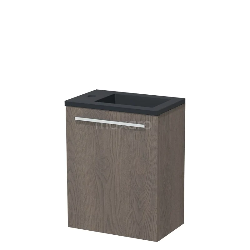 Modulo Pico WC-Möbel mit Waschbecken | 40 cm dunkelbraune Eiche glatte Front Quarz