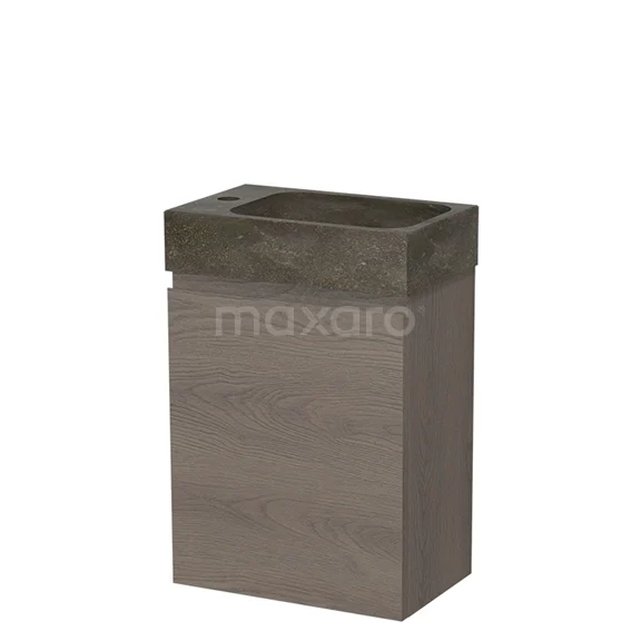 Modulo Pico WC-Möbel mit Waschbecken | 40 cm Dunkelbraune Eiche Grifflose Front Naturstein
