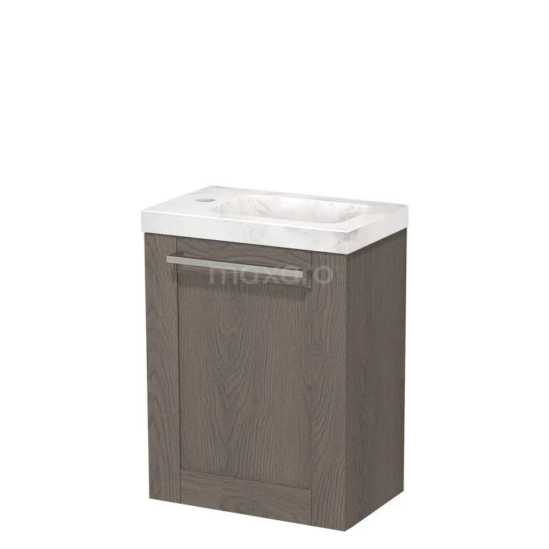 Modulo Pico WC-Möbel mit Waschbecken | 40 cm dunkelbraune Eiche Rahmenfront Waschbecken Weißer Marmor Naturstein TMW10-00593