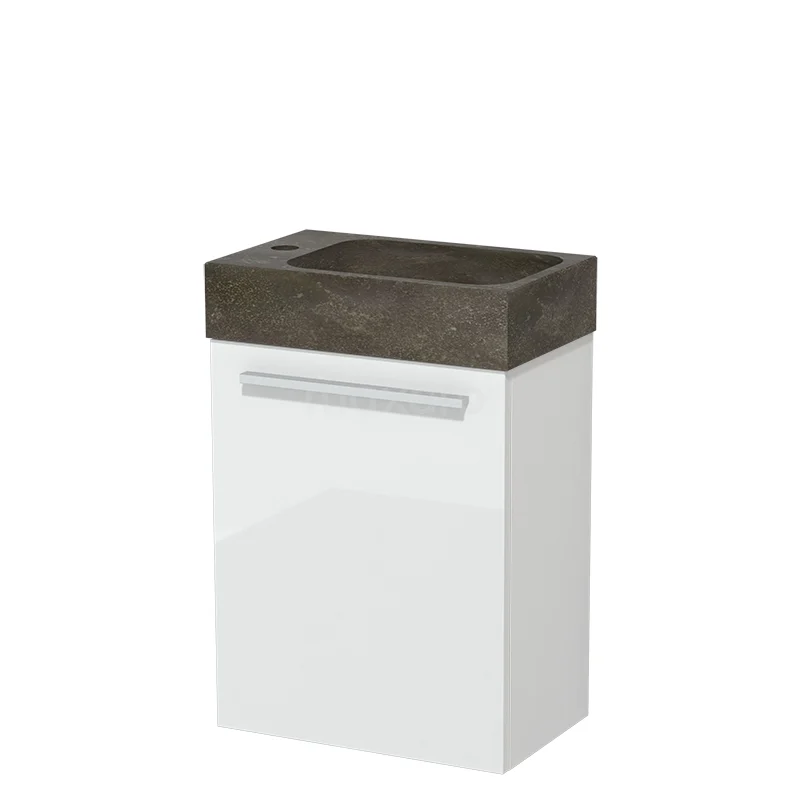 Modulo Pico WC-Möbel mit Waschbecken | 40 cm Hochglanz Weiß Glatte Front Naturstein