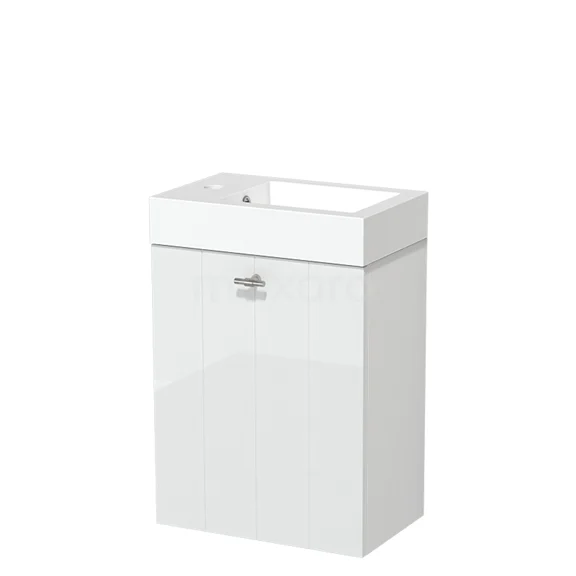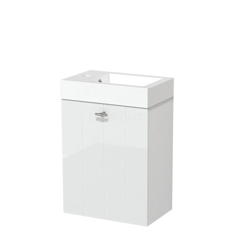 Modulo Pico WC-Möbel mit Waschbecken | 40 cm Hochglanz Weiß Lamellenfront Mineralguss