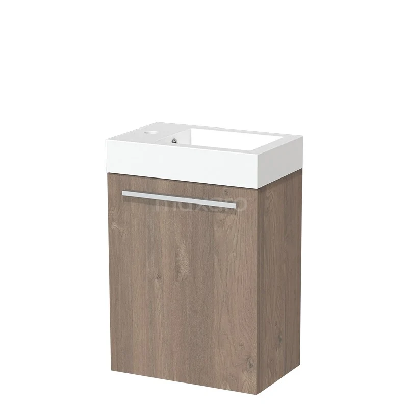 Modulo Pico WC-Möbel mit Waschbecken | 40 cm mittelbraune Eiche glatte Front Mineralguss