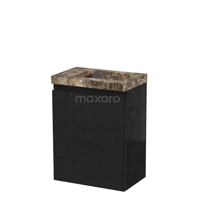 Modulo Pico WC-Möbel mit Waschbecken | 40 cm Schwarze Eiche Grifflose Front Dunkles Emperador-Waschbecken Naturstein