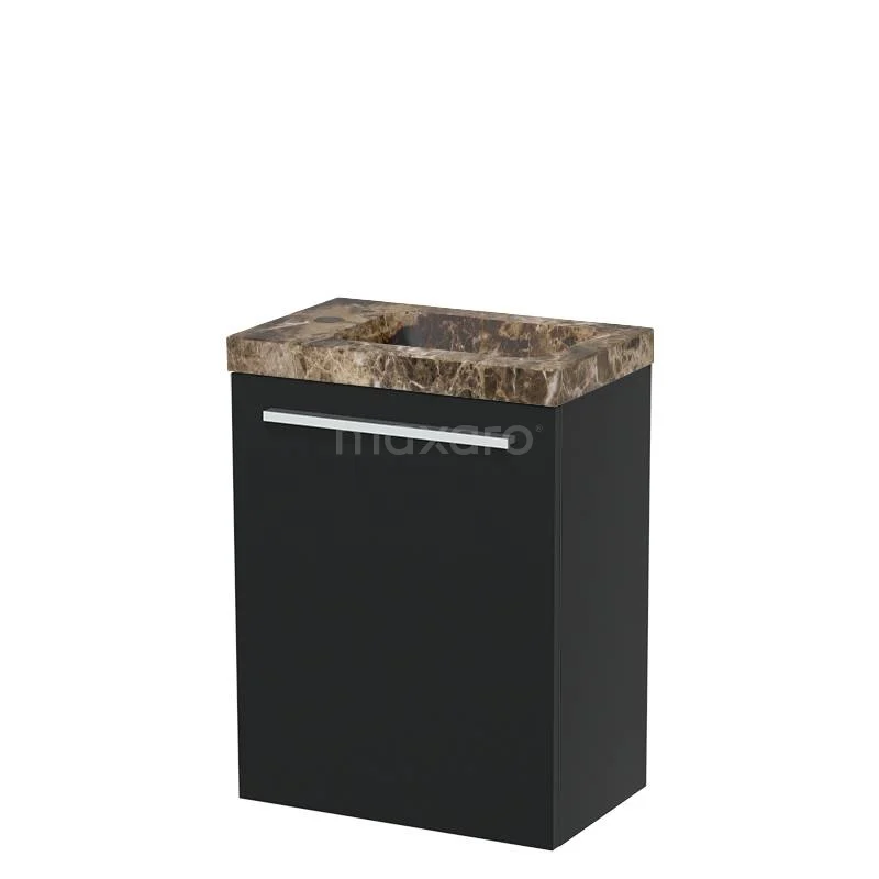 Modulo Pico WC-Möbel mit Waschbecken | 41 cm Matt Schwarz Flat Front Waschbecken Dark emperador Naturstein