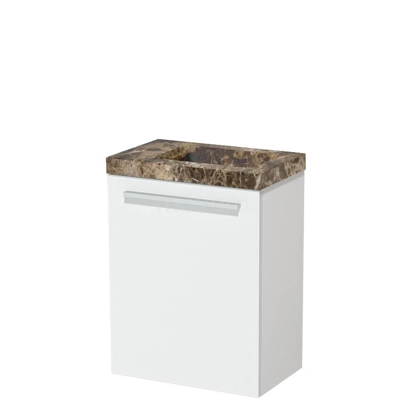 Modulo Pico WC-Möbel mit Waschbecken | 41 cm Matt Weiß Glatte Front Waschbecken Dark emperador Naturstein