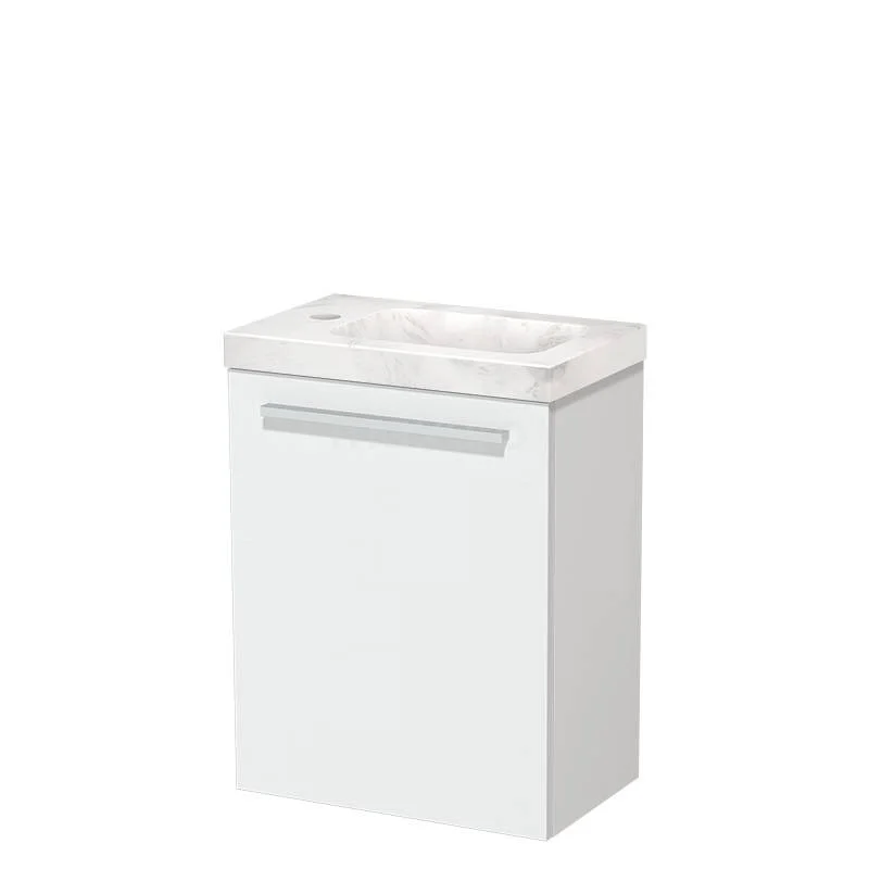 Modulo Pico WC-Möbel mit Waschbecken | 41 cm Matt Weiß Glatte Front Waschbecken Weißer Marmor Naturstein