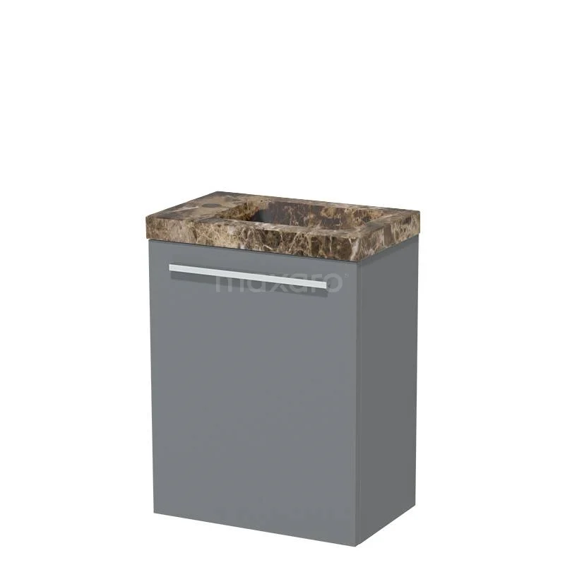 Modulo Pico WC-Möbel mit Waschbecken | 41 cm Mittelgrau Glatte Front Waschbecken Dark emperador Naturstein