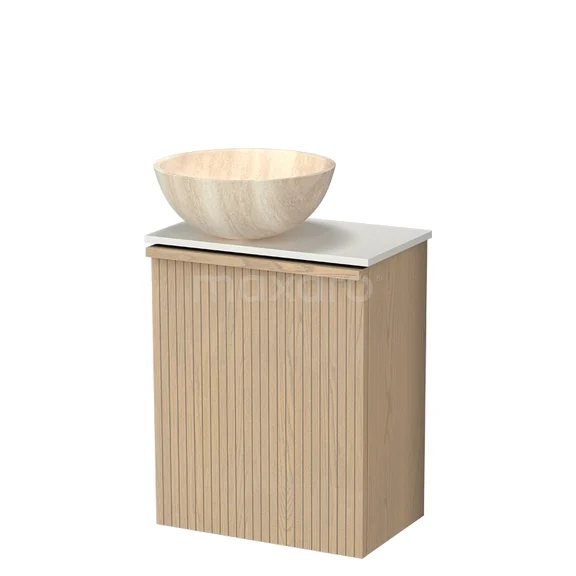 Modulo Plus Pico WC-Möbel mit Aufsatzwaschbecken | 41 cm Eiche Natur Gerippte Front Travertin Aufsatzwaschbecken aus Naturstein