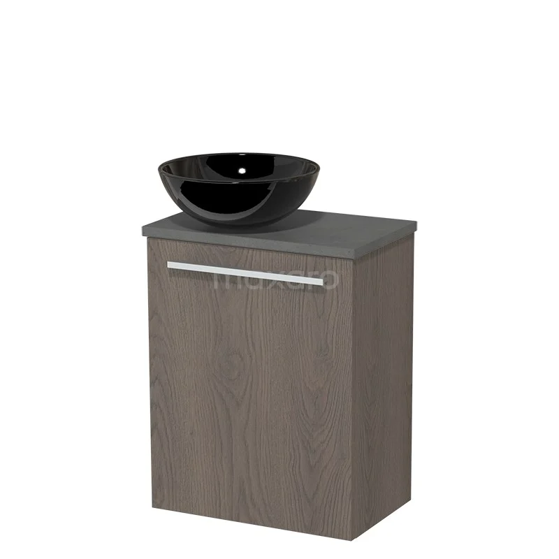 WC-Möbel mit Aufsatzwaschbecken | 41 cm Dunkelbraune Eiche Glatte Front Hochglanz Schwarz Keramik-Aufsatzwaschbecken Dunkelgrauer Beton Platte