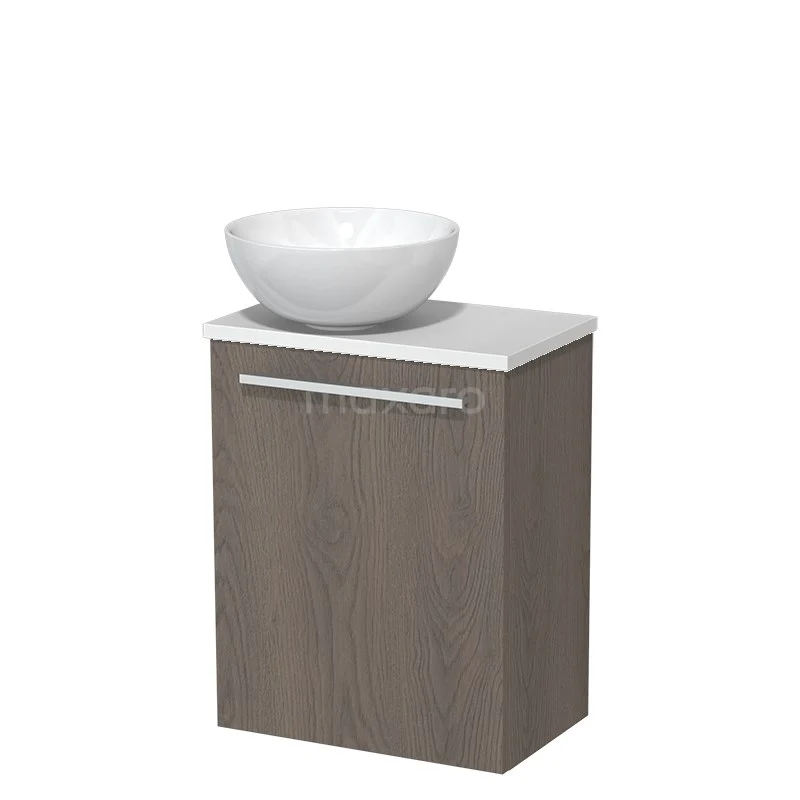 WC-Möbel mit Aufsatzwaschbecken | 41 cm Dunkelbraune Eiche Glatte Front Hochglanz Weiß Keramik Aufsatzwaschbecken Matt Weiß Platte