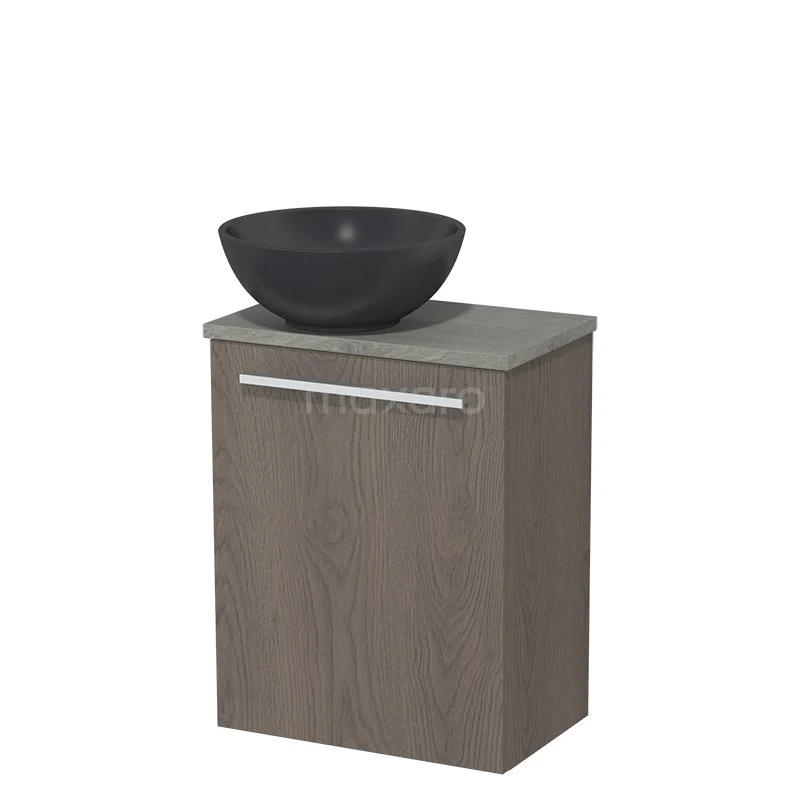 WC-Möbel mit Aufsatzwaschbecken | 41 cm Dunkelbraune Eiche Glatte Front Matt Schwarz Quarz Aufsatzwaschbecken Graue Eiche Platte