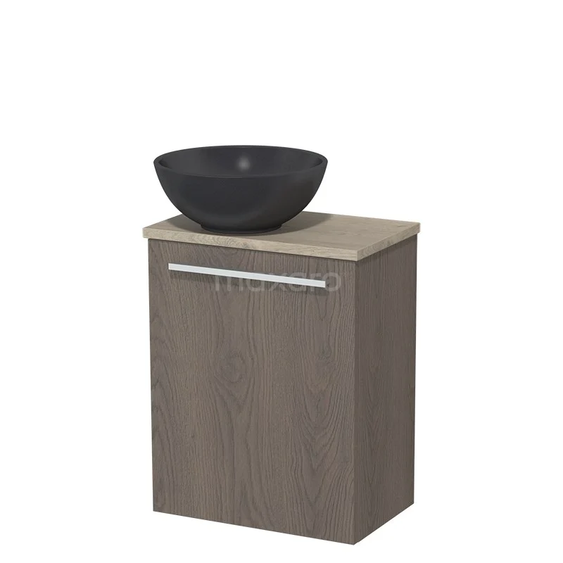 WC-Möbel mit Aufsatzwaschbecken | 41 cm Dunkelbraune Eiche Glatte Front Matt Schwarz Quarz Aufsatzwaschbecken Hellgraue Eiche Platte