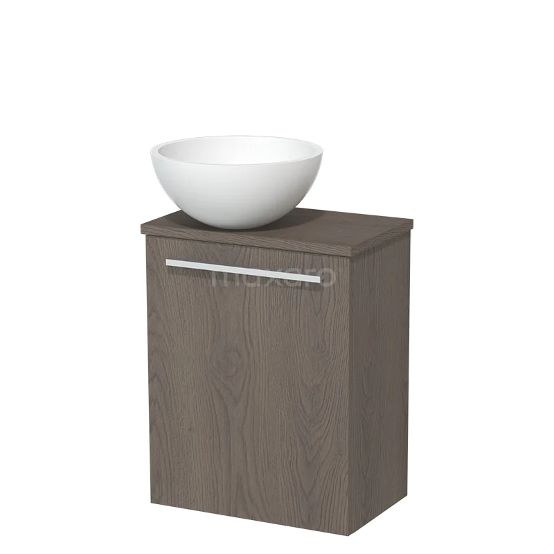 WC-Möbel mit Aufsatzwaschbecken | 41 cm Dunkelbraune Eiche Glatte Front Matt Weiß Aufsatzwaschbecken Dunkelbraune Eiche Platte