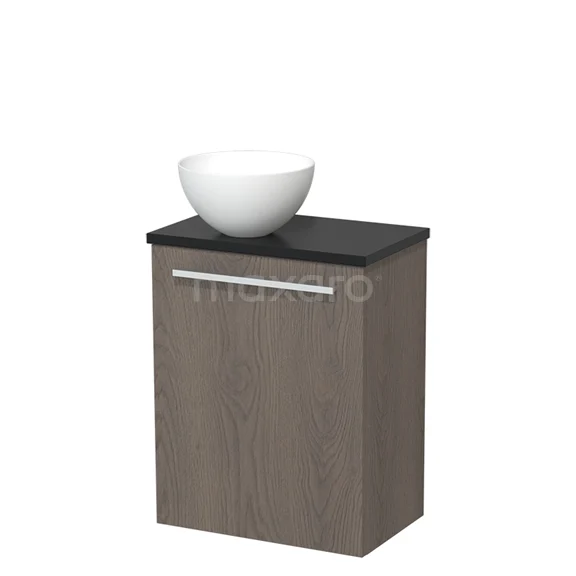 WC-Möbel mit Aufsatzwaschbecken | 41 cm Dunkelbraune Eiche Glatte Front Matt Weiß Aufsatzwaschbecken Matt Schwarz Platte