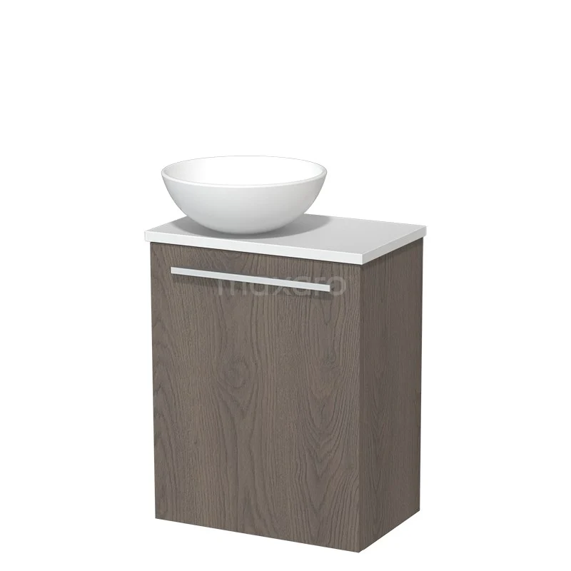 WC-Möbel mit Aufsatzwaschbecken | 41 cm Dunkelbraune Eiche Glatte Front Matt Weiß Keramik-Aufsatzwaschbecken Matt Weiß Platte