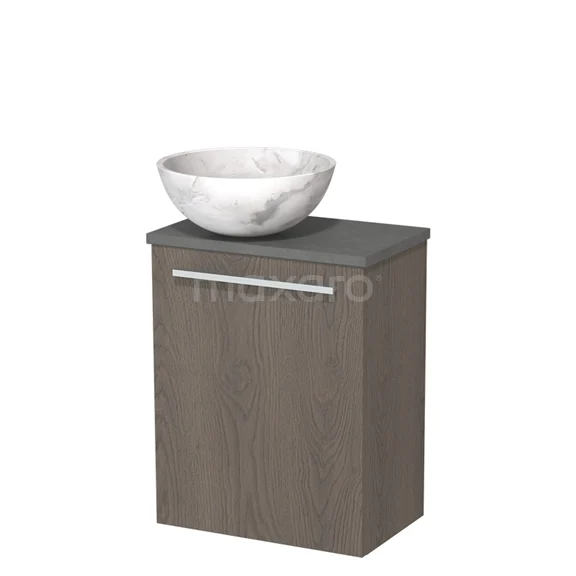 WC-Möbel mit Aufsatzwaschbecken | 41 cm Dunkelbraune Eiche Glatte Front Weißer Marmor Naturstein Aufsatzwaschbecken Dunkelgrauer Beton Platte