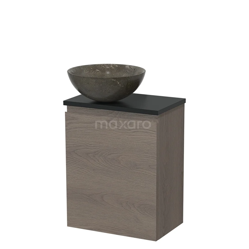 WC-Möbel mit Aufsatzwaschbecken | 41 cm Dunkelbraune Eiche Grifflose Front Blaustein Naturstein Aufsatzwaschbecken Matt Schwarz Platte