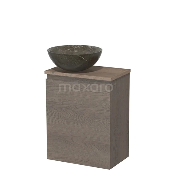 WC-Möbel mit Aufsatzwaschbecken | 41 cm Dunkelbraune Eiche Grifflose Front Blaustein Naturstein Aufsatzwaschbecken Mittelbraune Eiche Platte