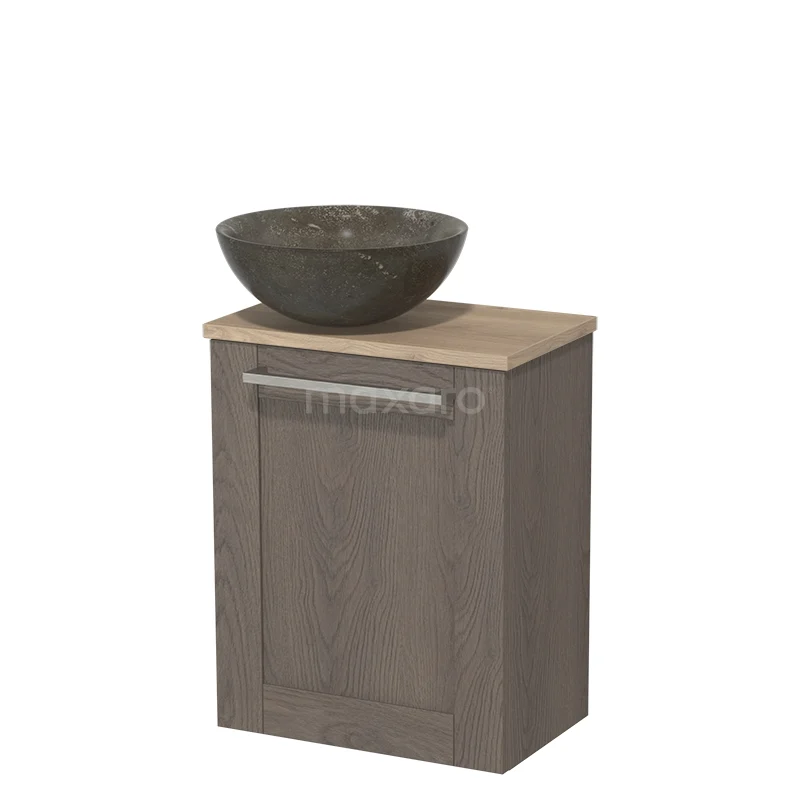WC-Möbel mit Aufsatzwaschbecken | 41 cm dunkelbraune Eiche Rahmenfront Blaustein Naturstein Aufsatzwaschbecken hellbraune Eiche Platte