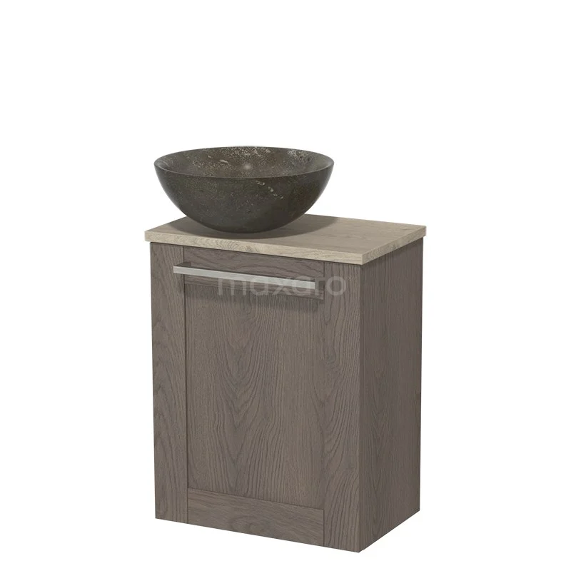 WC-Möbel mit Aufsatzwaschbecken | 41 cm dunkelbraune Eiche Rahmenfront Blaustein Naturstein Aufsatzwaschbecken hellgraue Eiche Platte