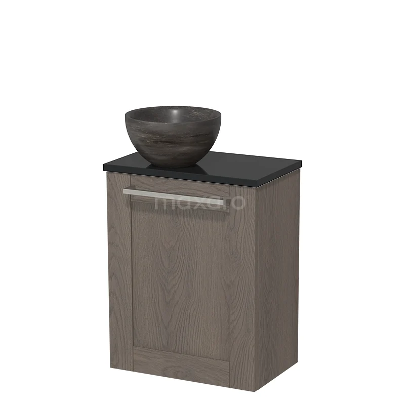WC-Möbel mit Aufsatzwaschbecken | 41 cm Dunkelbraune Eiche Rahmenfront Blaustein Naturstein-Aufsatzwaschbecken Hochglanz Schwarz