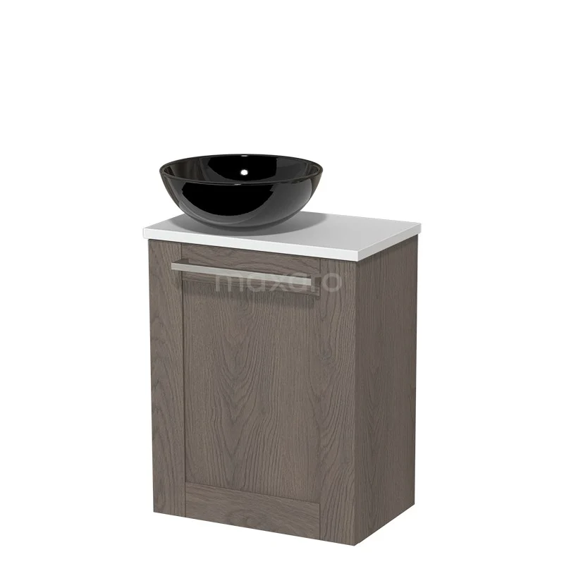 WC-Möbel mit Aufsatzwaschbecken | 41 cm Dunkelbraune Eiche Rahmenfront Hochglanz Weiß Keramik-Aufsatzwaschbecken Matt Weiß Platte