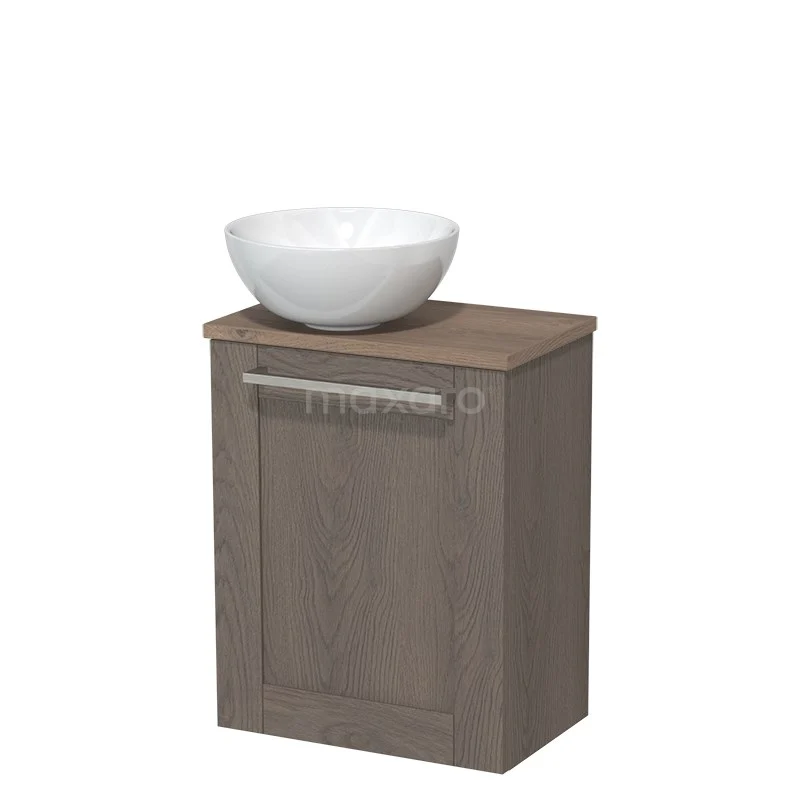 WC-Möbel mit Aufsatzwaschbecken | 41 cm Dunkelbraune Eiche Rahmenfront Hochglanz Weiß Keramik Aufsatzwaschbecken Mittelbraune Eiche Platte