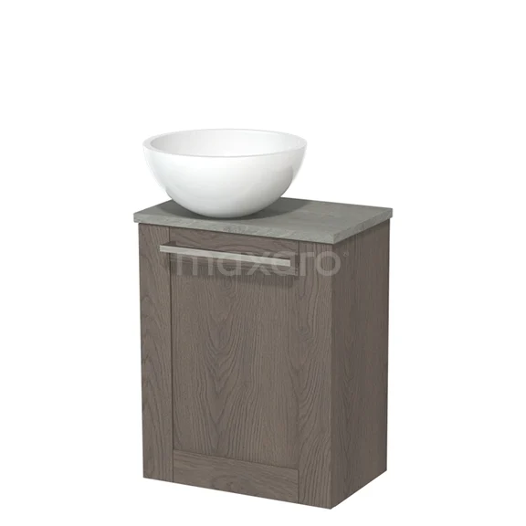 WC-Möbel mit Aufsatzwaschbecken | 41 cm dunkelbraune Eiche Rahmenfront Hochglanz Weiß Mineralguss Aufsatzwaschbecken Graue Eiche