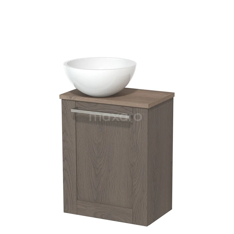 WC-Möbel mit Aufsatzwaschbecken | 41 cm Dunkelbraune Eiche Rahmenfront Hochglanz Weiß Mineralguss Aufsatzwaschbecken Mittelbraune Eiche Platte