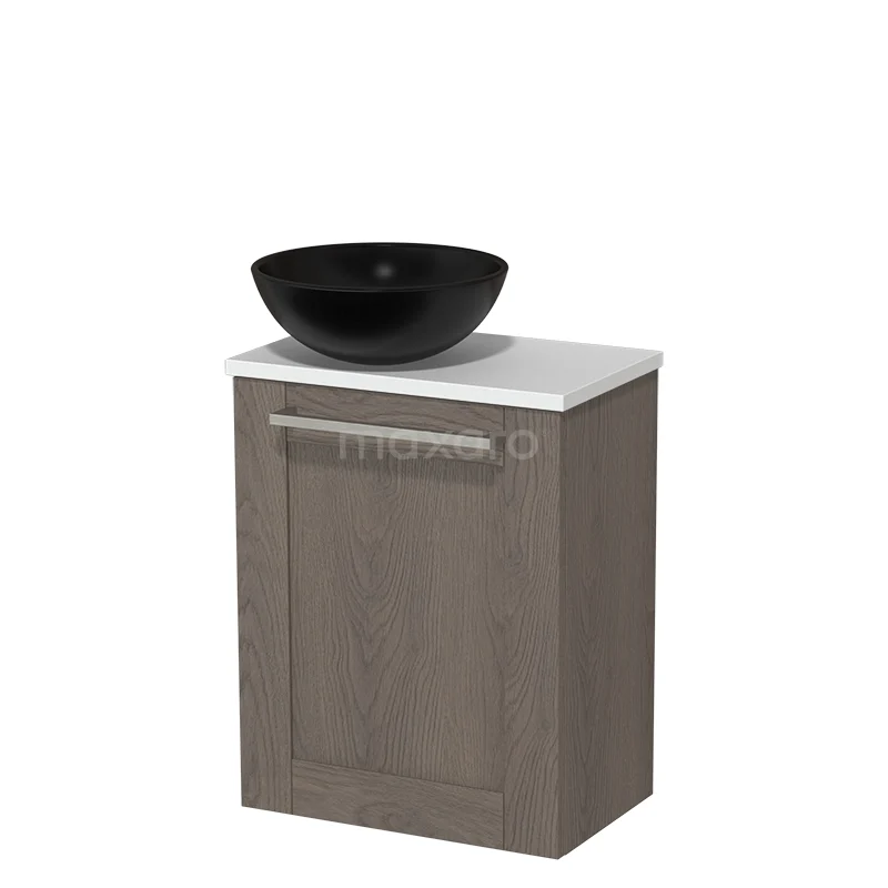 WC-Möbel mit Aufsatzwaschbecken | 41 cm Dunkelbraune Eiche Rahmenfront Matt Schwarz Keramik-Aufsatzwaschbecken Matt Weiß Platte