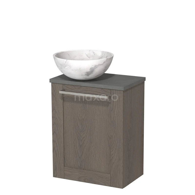 WC-Möbel mit Aufsatzwaschbecken | 41 cm Dunkelbraune Eiche Rahmenfront Weißer Marmor Naturstein Aufsatzwaschbecken Dunkelgrauer Beton Platte