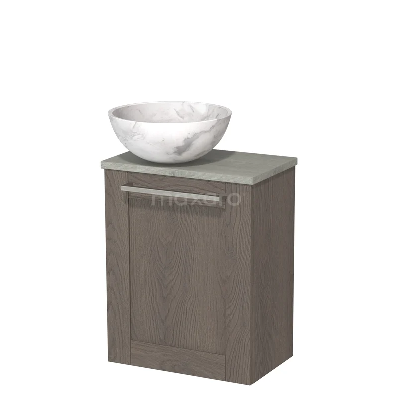 WC-Möbel mit Aufsatzwaschbecken | 41 cm dunkelbraune Eiche Rahmenfront Weißer Marmor Naturstein Aufsatzwaschbecken Graue Eiche Platte