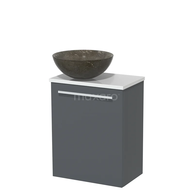 WC-Möbel mit Aufsatzwaschbecken | 41 cm Dunkelgrau Glatte Front Blaustein Naturstein-Aufsatzwaschbecken Hochglanz Weiß