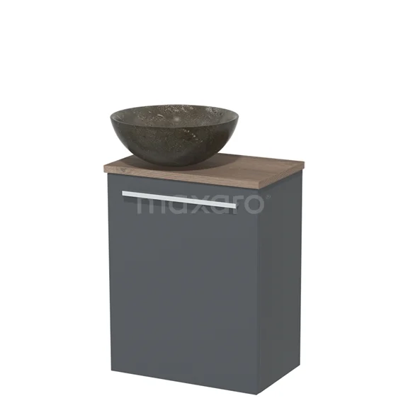 WC-Möbel mit Aufsatzwaschbecken | 41 cm Dunkelgrau Glatte Front Blaustein Naturstein Aufsatzwaschbecken Mittelbraune Eiche