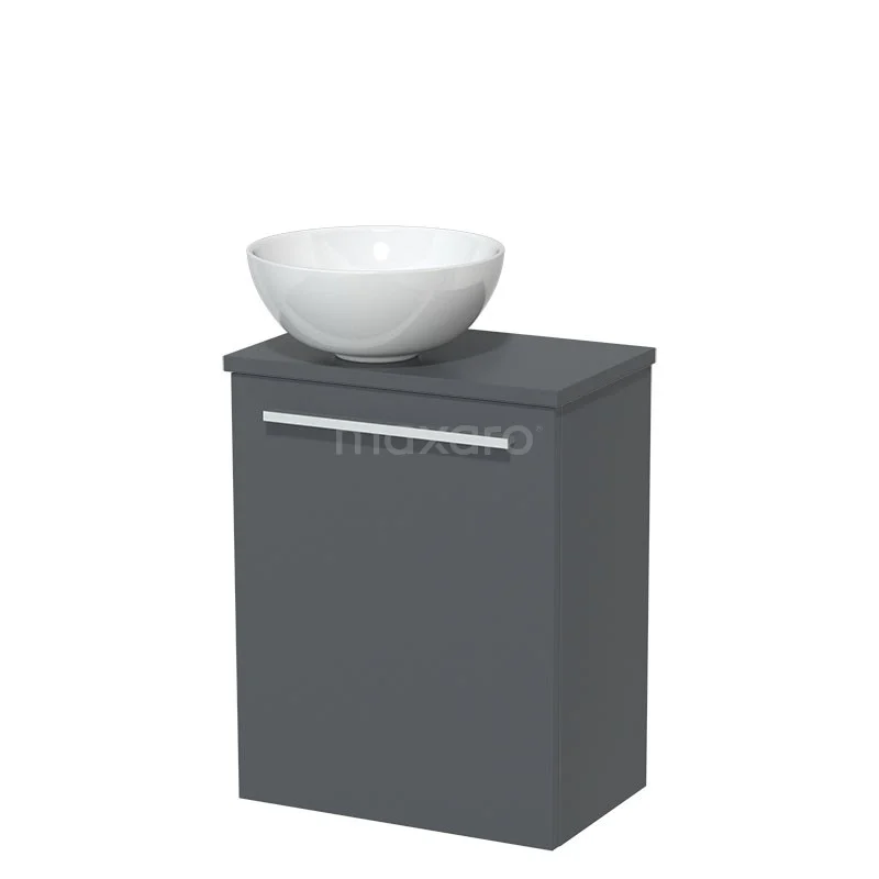 WC-Möbel mit Aufsatzwaschbecken | 41 cm Dunkelgrau Glatte Front Hochglanz Weiß Keramik-Aufsatzwaschbecken Dunkelgraue Platte