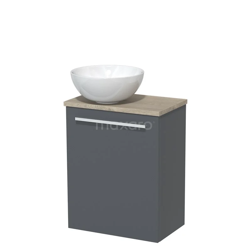 WC-Möbel mit Aufsatzwaschbecken | 41 cm Dunkelgrau Glatte Front Hochglanz Weiß Keramik-Aufsatzwaschbecken Hellgraue Eiche Platte