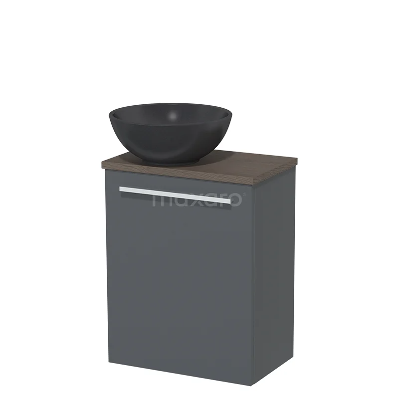 WC-Möbel mit Aufsatzwaschbecken | 41 cm Dunkelgrau Glatte Front Matt Schwarz Quarz Aufsatzwaschbecken Dunkelbraune Eiche Platte