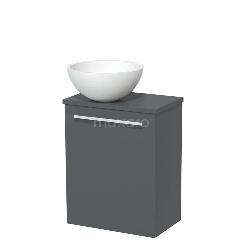 WC-Möbel mit Aufsatzwaschbecken | 41 cm Dunkelgrau Glatte Front Matt Weiß Solid Surface Aufsatzwaschbecken Dunkelgraue Platte