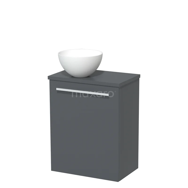 WC-Möbel mit Aufsatzwaschbecken | 41 cm Dunkelgrau Glatte Front Matt Weiß Solid Surface Aufsatzwaschbecken Dunkelgraue Platte