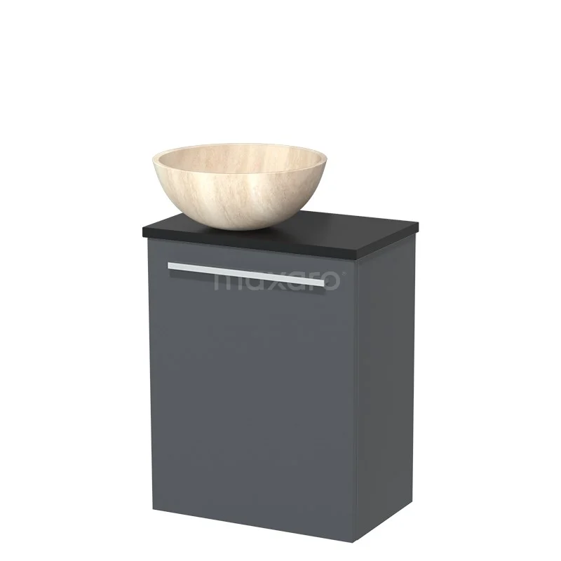 WC-Möbel mit Aufsatzwaschbecken | 41 cm Dunkelgrau Glatte Front Travertin Naturstein Aufsatzwaschbecken Matt Schwarz Platte