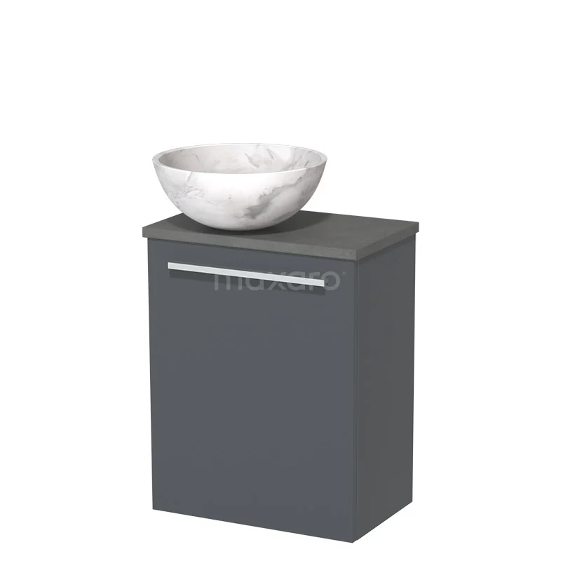 WC-Möbel mit Aufsatzwaschbecken | 41 cm Dunkelgrau Glatte Front Weißer Marmor Aufsatzwaschbecken aus Naturstein Dunkelgrauer Beton Platte