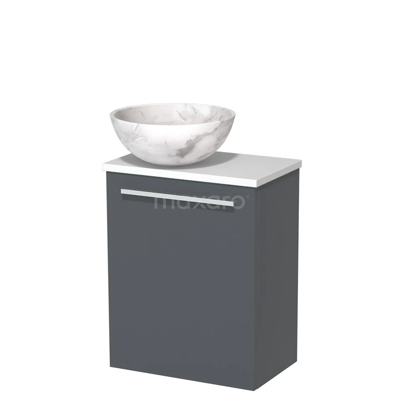 WC-Möbel mit Aufsatzwaschbecken | 41 cm Dunkelgrau Glatte Front Weißer Marmor Naturstein Aufsatzwaschbecken Matt Weiß Platte
