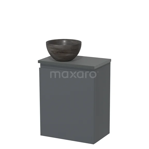 WC-Möbel mit Aufsatzwaschbecken | 41 cm Dunkelgrau Grifflose Front Blaustein Naturstein-Aufsatzwaschbecken Dunkelgraue Platte