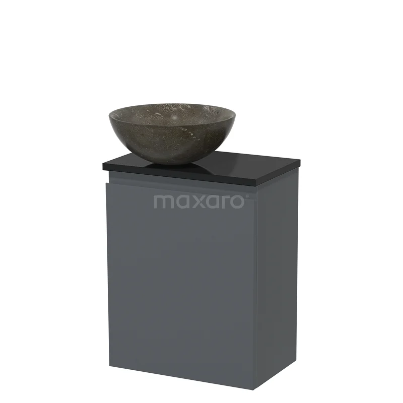 WC-Möbel mit Aufsatzwaschbecken | 41 cm Dunkelgrau Grifflose Front Blaustein Naturstein-Aufsatzwaschbecken Hochglanz Schwarz