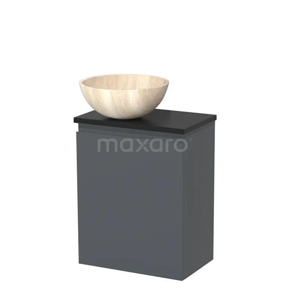 WC-Möbel mit Aufsatzwaschbecken | 41 cm Dunkelgrau Grifflose Front Travertin Naturstein Aufsatzwaschbecken Matt Schwarz Platte